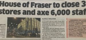 دوابەدوای ڕاگەیاندنێک لە بەڕێوەبەرایەتی ”هاوس ئۆف فرەیزەر” بە داخستنی ٣١ فرۆشگا لە کۆی ٥٩ فرۆشگاکانی لە بەریتانیا و ئێرلەندا، هەڕەشەی دەرکردن رووبەڕووی ٦٠٠٠ کرێکار وکارمەندی ئەو فرۆشگایە دەبێتەوە. هەروەها ڕایانگەیاند کە فرۆشگای سەرەکی ”هاوس ئۆف فرەیزەر” کە دەکەوێتە ” ئۆکسۆرد ستریت ”ەوە لە ناوەندی لەندەندا لەگەڵ فرۆشگا سەرەکیەکەی لە بێرمنگهام دەکەوێتە بەر ئەم بڕیاری داخستنانە.