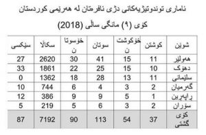 قوربانیانی توندوتیژی و نامووسپەرستی و گۆشەیەک لە ئاماری بڵاوکراوەی نۆ مانگی ڕابردوو…