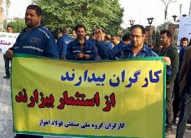 نزیک بە ٢٠ رۆژە، کریکارانی پیشەسازی ئاسن لە ئەهواز بەردەوامن لە مانگرتن و خۆپیشاندان و کۆبونەوە، لەبەردەم ناوەندە حکومیەکان و شەقامەکانی شاری ئەهواز.