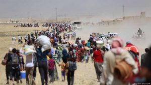 کاتێکیش، داعش وەکو هێزی خوداو قورعان و جێبەجێکەری پەیامەکانی پەیامبەر… هێرشی کردە سەر شەنگال و ناوچەکانی دەوروبەری، هێزە زۆر زەوەندەکەی پارتی و حزبە هاوپەیمانەکانی، هاوشێوەی سوپای بودەڵەی مالیکی رایانکرد. و بەسەدان هەزار ئینسانیان بەدەستی بەستراوەوە بۆ جانەوەرانی ئیسلامی داعشی جێهێشت.